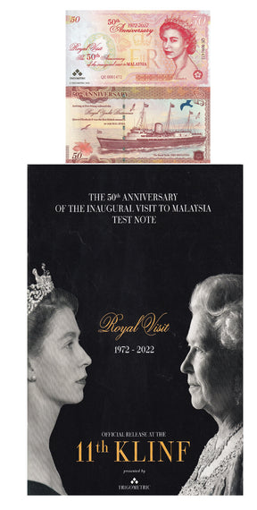 Malaysia Test Note Inaugural Visit QE II Royal Yacht 1972-2022 50th W/Book