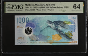 Maldives 1000 Rufiyaa 2015 Polymer P 31 a Choice UNC PMG 64