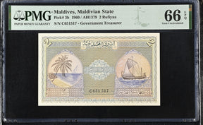 Maldives 2 Rufiyaa 1960 P 3 b Gem UNC PMG 66 EPQ