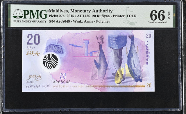 Maldives 20 Rufiyaa 2015 P 27 a Gem UNC PMG 66 EPQ