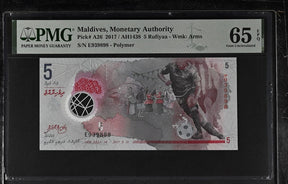 Maldives 5 Rufiyaa 2017 Polymer P A26 Gem UNC PMG 65 EPQ