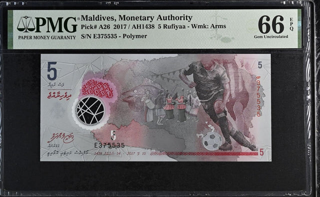 Maldives 5 Rufiyaa 2017 Polymer P A26 Gem UNC PMG 66 EPQ
