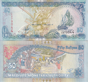 Maldives 50 Rufiyaa 2000 P 21 a UNC With Yellow Tone