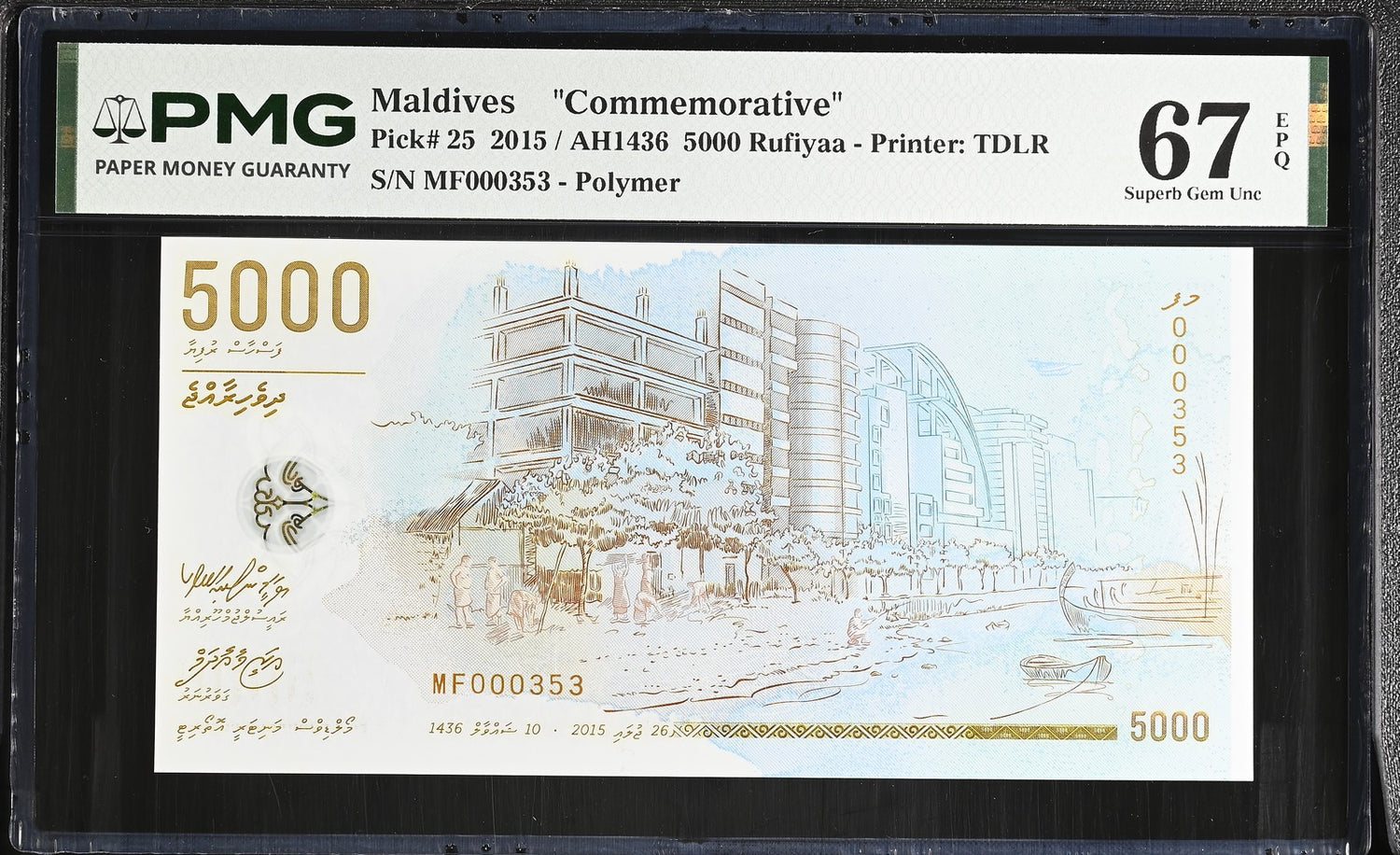 Maldives 5000 Rufiyaa 2015 P 25 Polymer Commemorative Superb Gem UNC PMG 67 EPQ