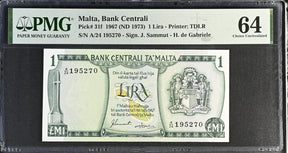 Malta 1 Lira 1967 ND 1973 P 31 f Choice UNC PMG 64