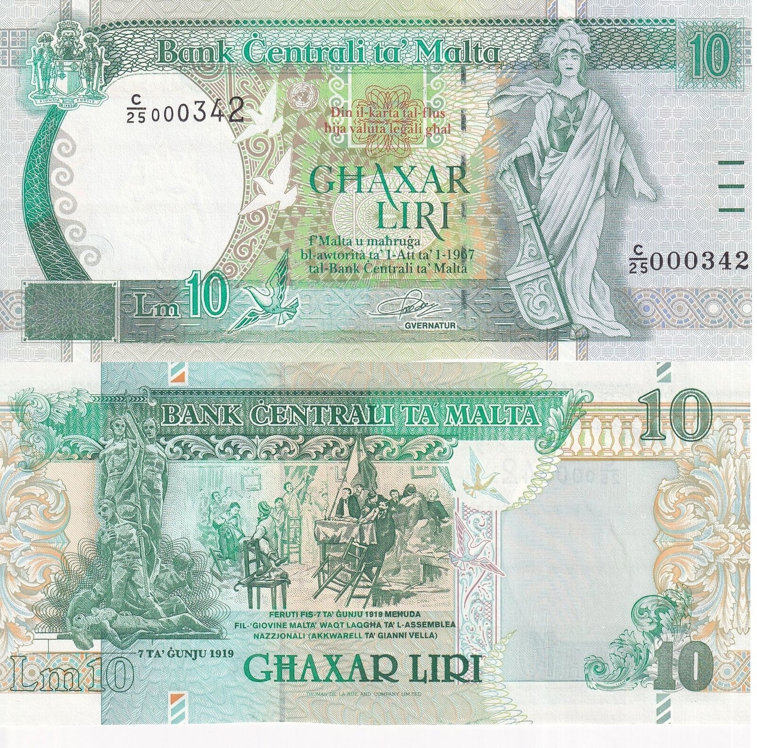 Malta 10 Liri L. 1967 (1994) Low 3 Digit P 47 a UNC