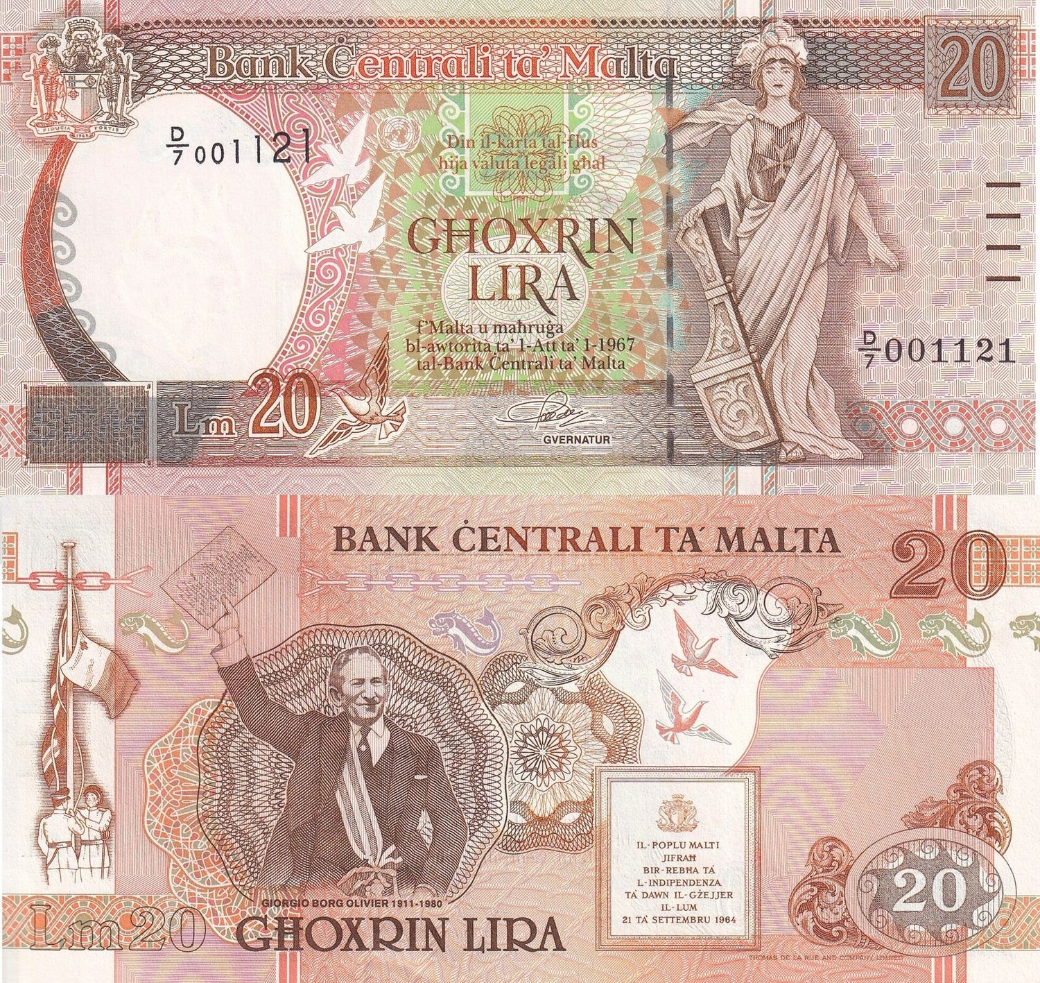 Malta 20 Liri L. 1967 (1994) P 48 UNC