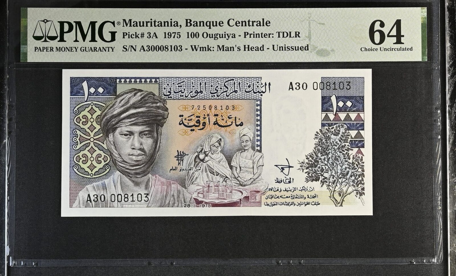 Mauritania 100 Ouguiya 1975 P 3A Choice UNC PMG 64