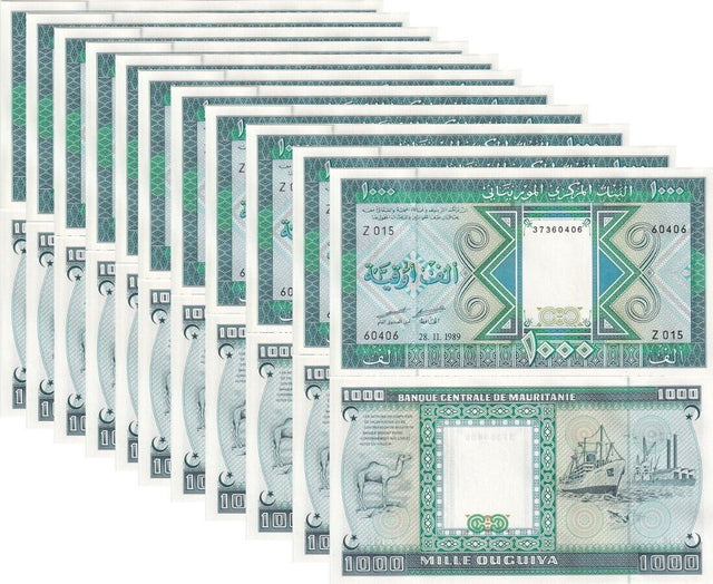 Mauritania 1000 Ouguiya 1989 P 7A P NL Camel & Ship Unissued 2024 LOT 10 UNC