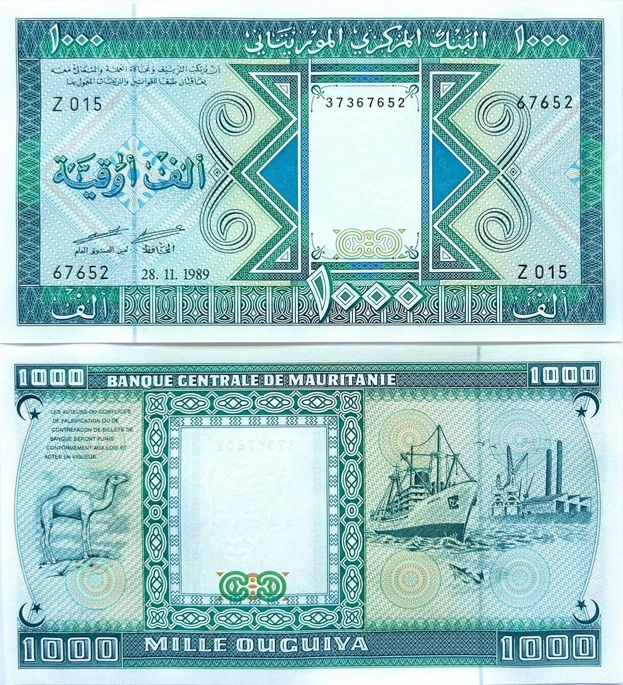 Mauritania 1000 Ouguiya 1989 P 7A P NL Camel & Ship Unissued 2024 UNC