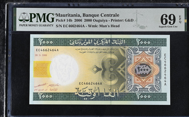 Mauritania 2000 Ouguiya 2006 P 14 b Superb Gem UNC PMG 69 EPQ