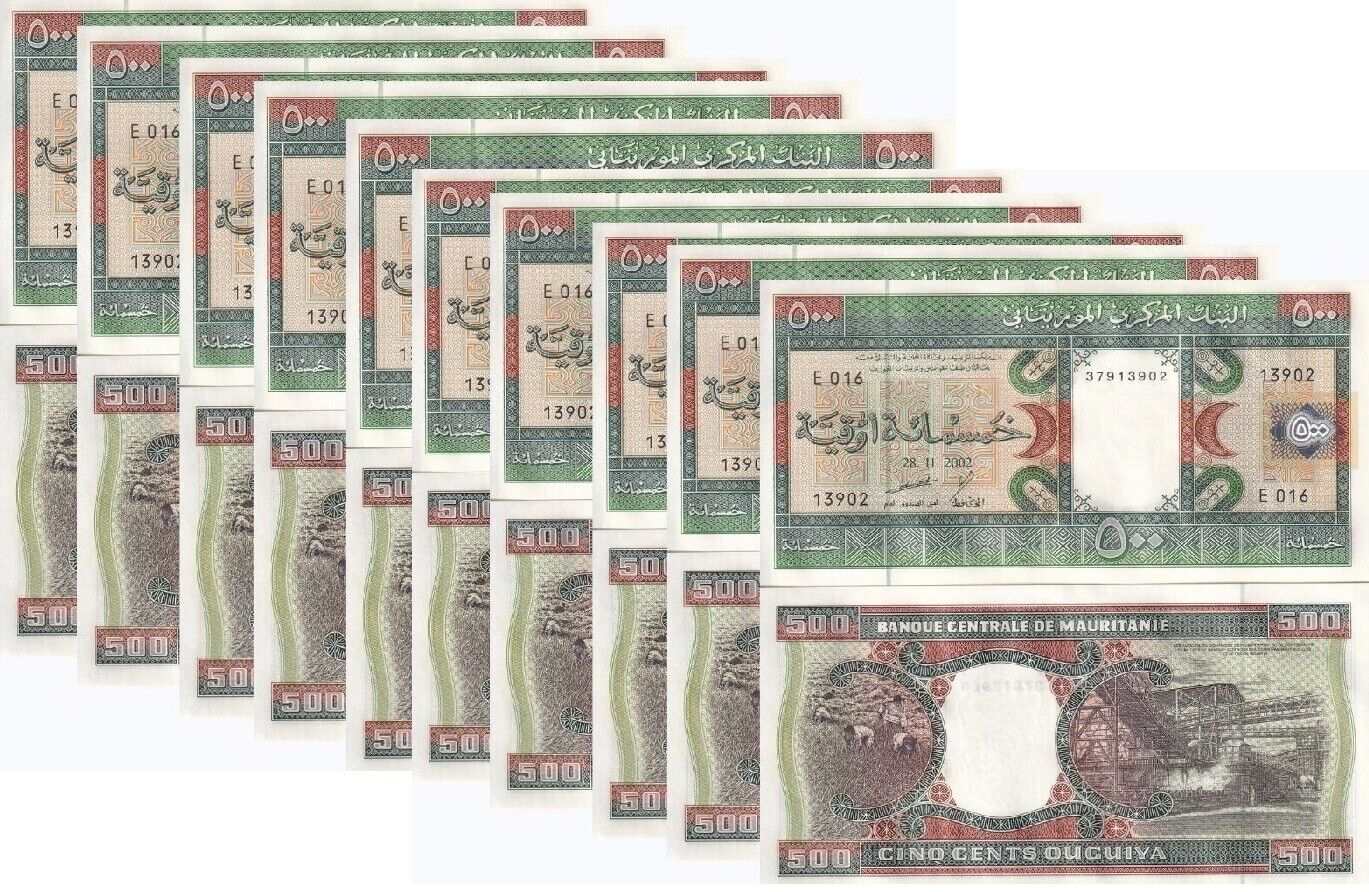 Mauritania 500 Ouguiya 2002 P 8 UNC LOT 10 PCS