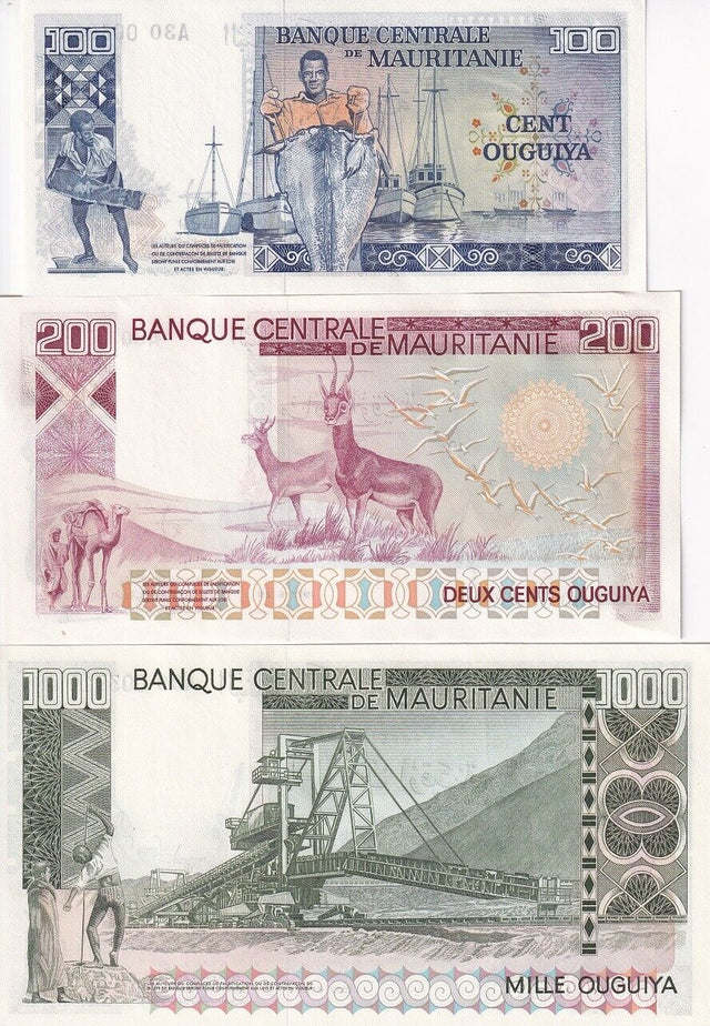 Mauritania SET 3 UNC 100 200 1000 Ouguiya 1975 1977 P 3A 3B 3C TDLR Issued 2024