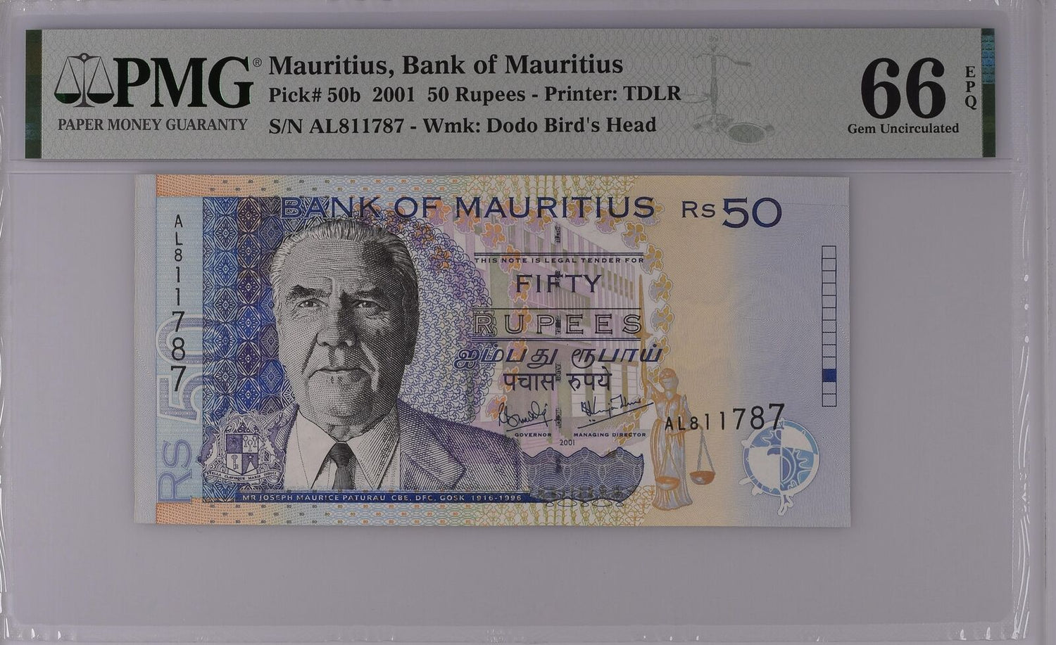Mauritius 50 Rupees 2001 P 50 b GEM UNC PMG 66 EPQ