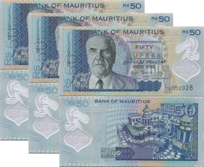 Mauritius 50 Rupees 2013 P 65 Polymer UNC LOT 3 Pcs