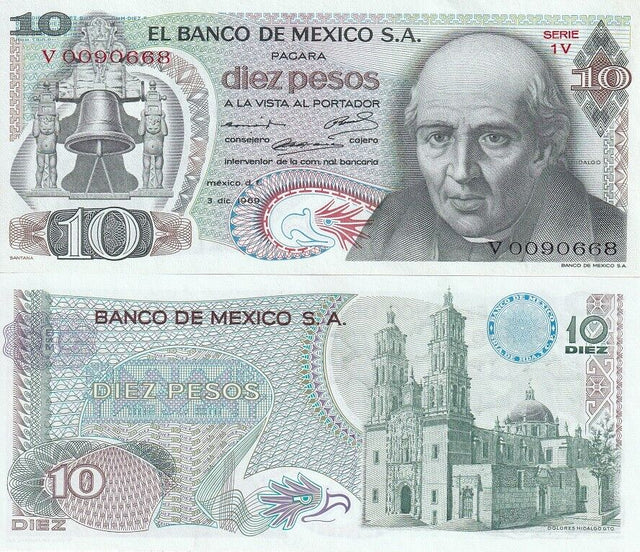 Mexico 10 Pesos 03-12-1969 P 63 b AUnc