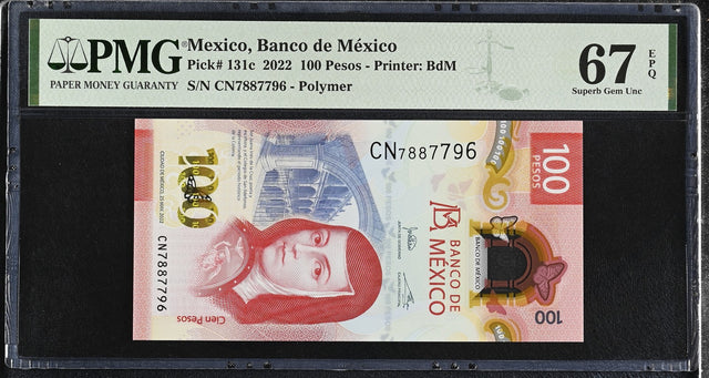 Mexico 100 Pesos 2022 P 131 c Superb Gem UNC PMG 67 EPQ
