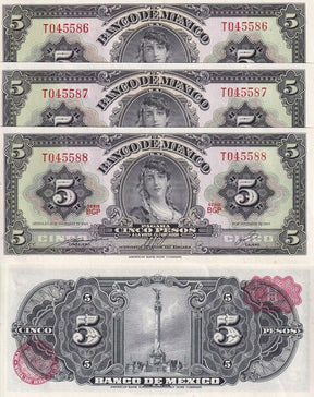 Mexico 5 Pesos 1969 P 60 j AUnc LOT 3 PCS
