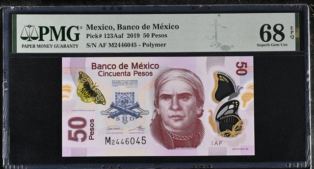 Mexico 50 Pesos 2019 P 123Aaf Polymer Superb Gem UNC PMG 68 EPQ