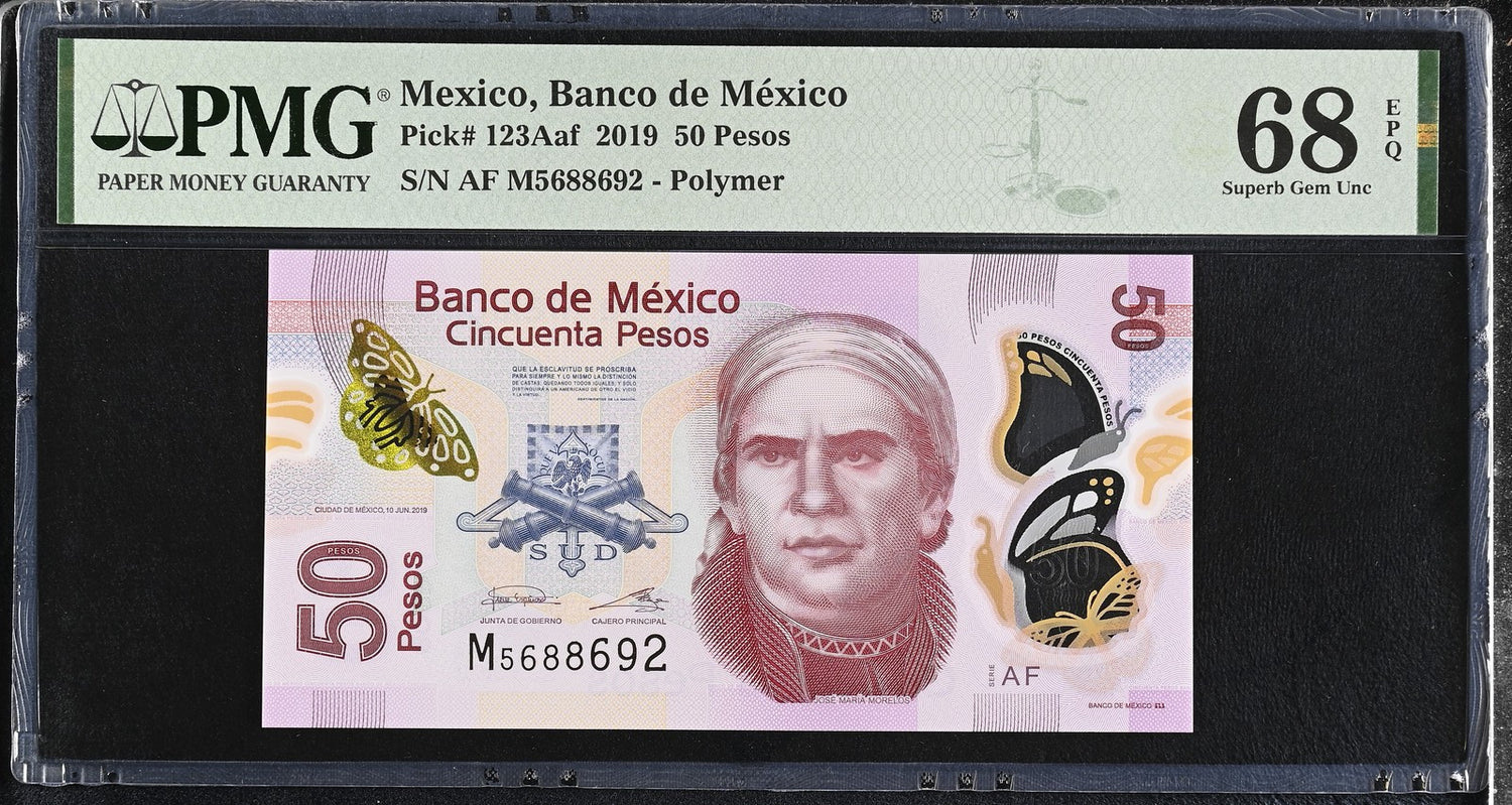 Mexico 50 Pesos 2019 P 123Aaf Polymer Superb Gem UNC PMG 68 EPQ TOP POP