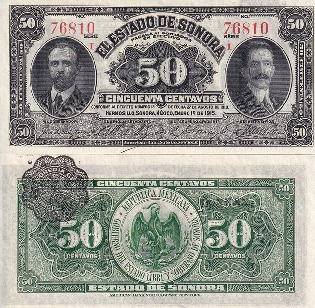 Mexico Revolutionary Sonora 50 Centavos 1915 P S1070 UNC