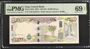 Iraq 50000 Dinars 2023 P 103 d Superb Gem UNC PMG 69 EPQ TOP POP