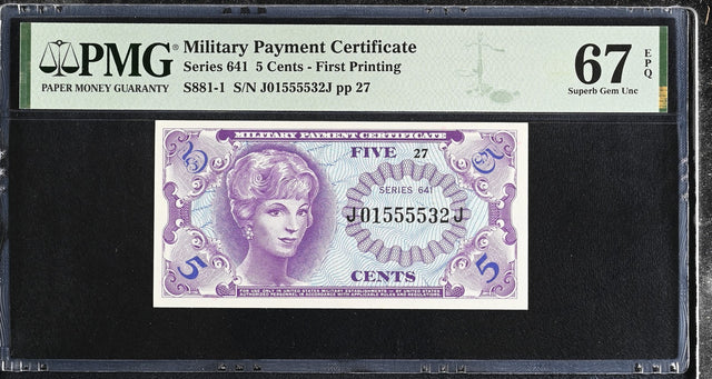 Military Payment Certificate 5 Cents 1965 P M57 USA Superb Gem UNC PMG 67 EPQ