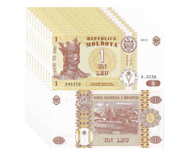 Moldova 1 Leu 2010 P 8 h UNC LOT 10 PCS