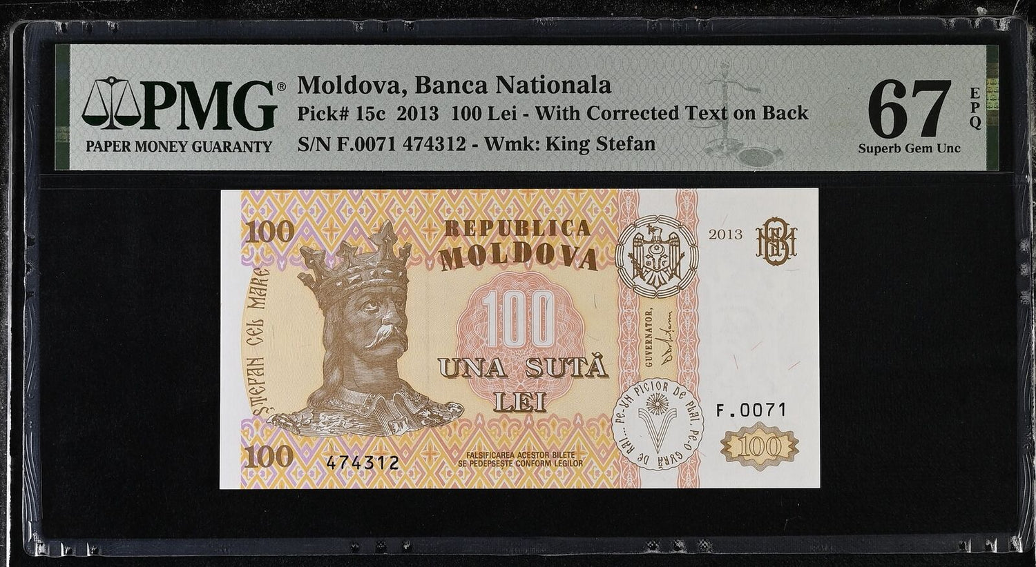 Moldova 100 Lei 2013 P 15 c Superb Gem UNC PMG 67 EPQ TOP POP