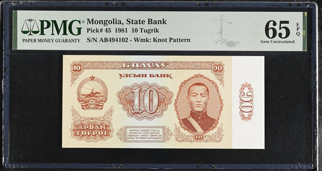 Mongolia 10 Tugrik 1981 P 45 Gem UNC PMG 65 EPQ