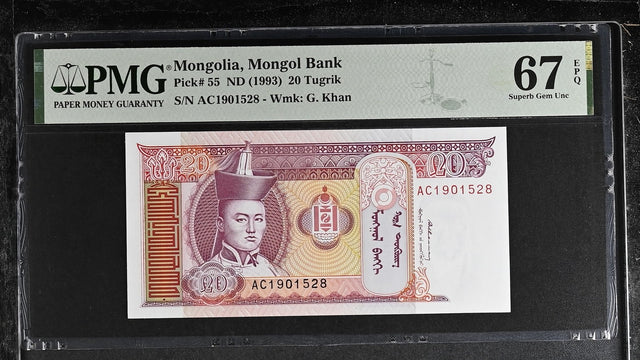 Mongolia 20 Tugrik ND 1993 P 55 Superb Gem UNC PMG 67 EPQ TOP POP