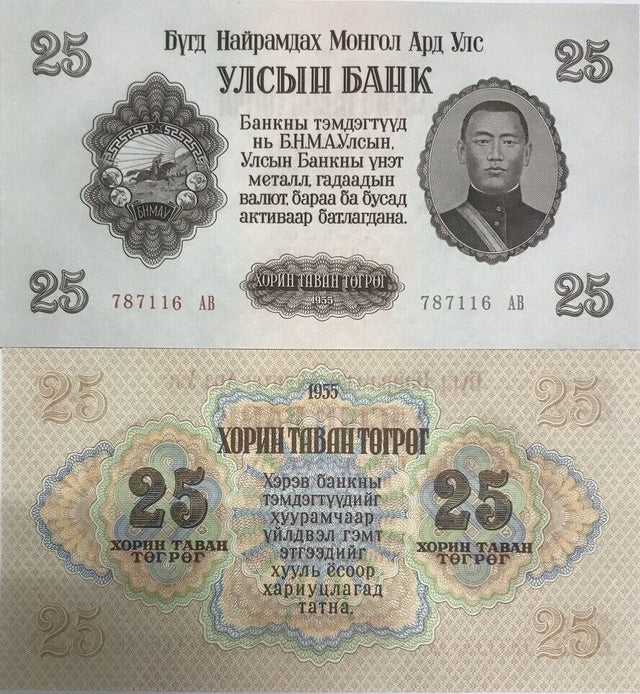 Mongolia 25 Tugrik 1955 P 32 UNC