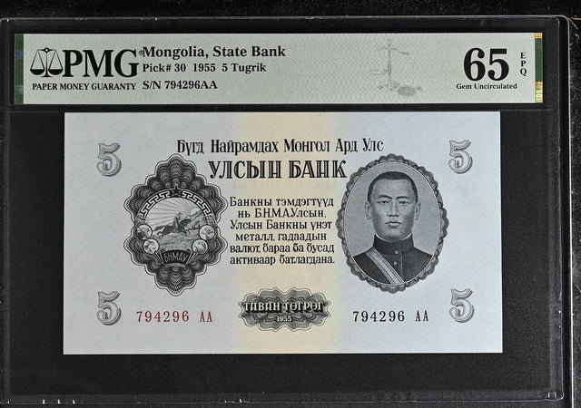 Mongolia 5 Tugrik 1955 P 30 Gem UNC PMG 65 EPQ
