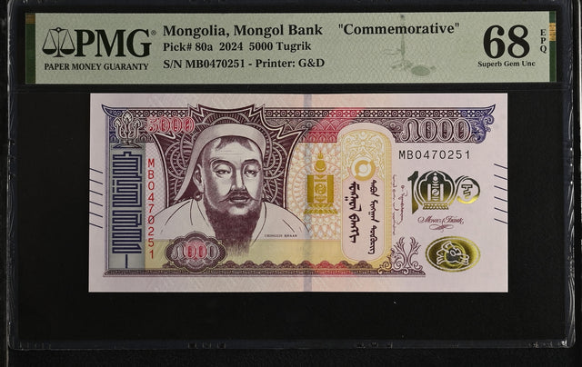 Mongolia 5000 Tugrik 2024 Commemorative P 80 a Superb Gem UNC PMG 68 EPQ TOP POP