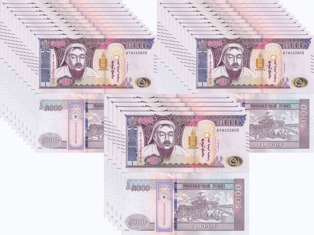 Mongolia 5000 Tugrik 2024 NEW Blind Mark P 76 UNC LOT 25 PCS 1/4 Bundle