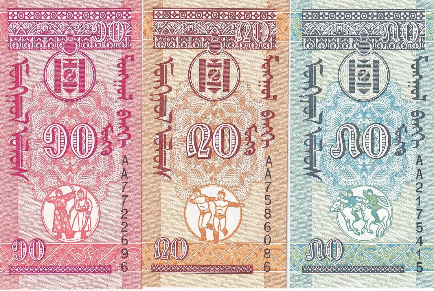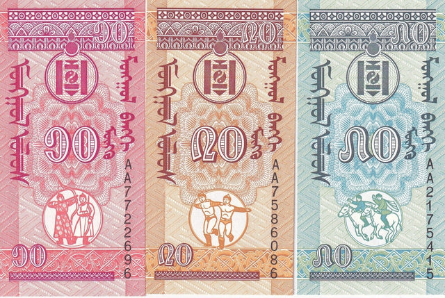 Mongolia set 3 UNC 10 20 50 Mongo 1993 P 49 50 51