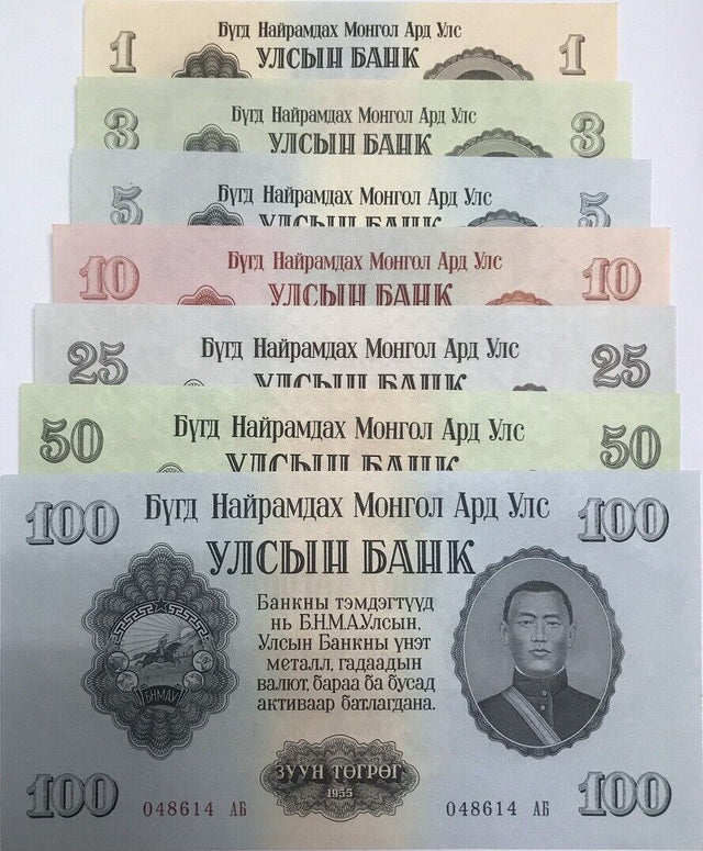 Mongolia Set 7 Pcs 1 3 5 10 25 50 100 Tugrik 1995 P 28 29 30 31 32 33 P 34 AUnc