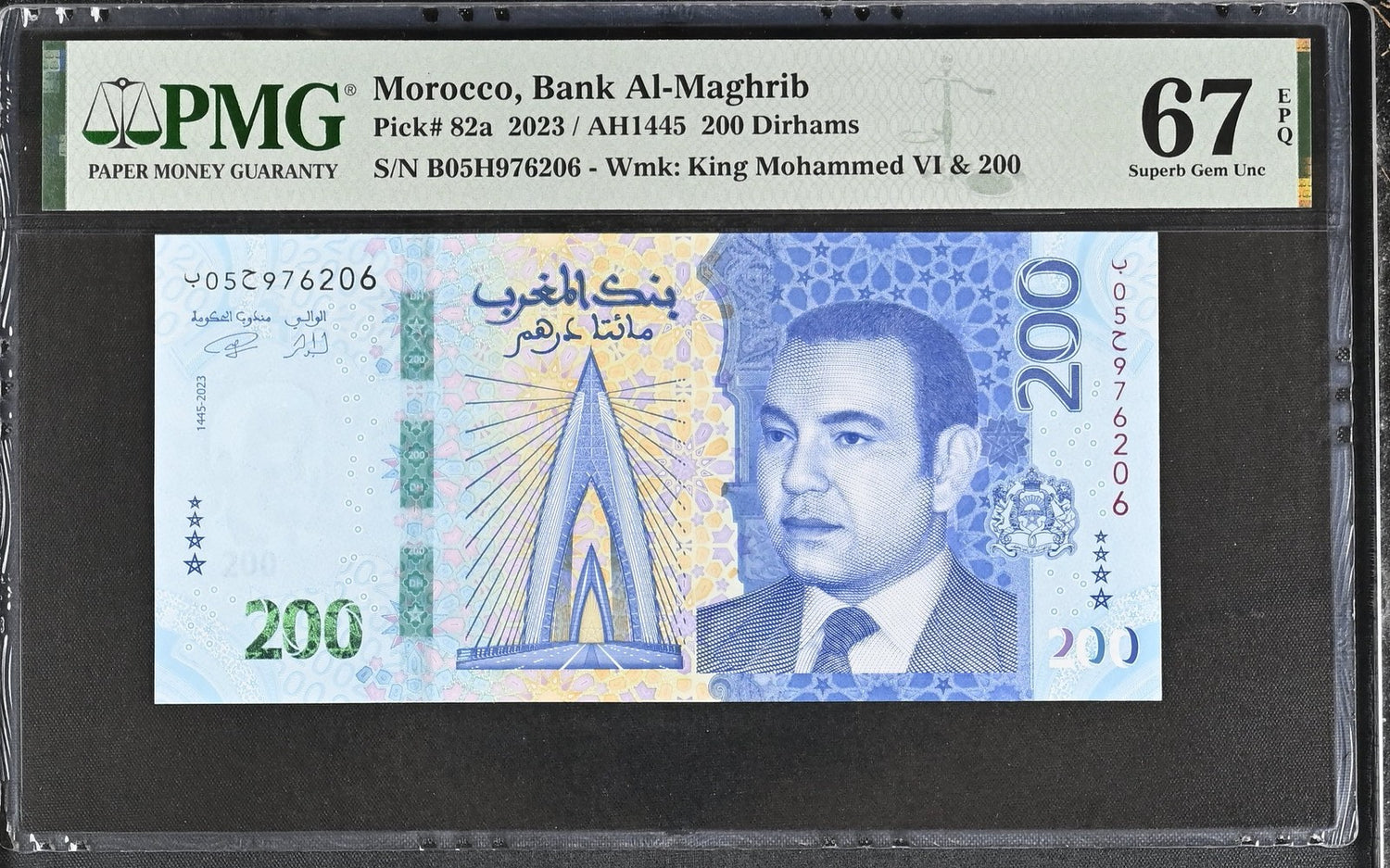 Morocco 200 Dirhams 2023 P 82 a Superb Gem UNC PMG 67 EPQ PNB