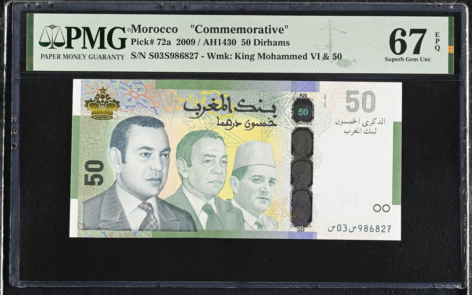 Morocco 50 Dirhams 2009 P 72 a Superb Gem UNC PMG 67 EPQ