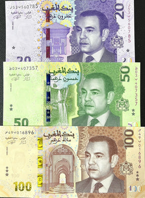 Morocco Set 3 UNC 20 50 100 Dirhams 2023/2024 P 79 80 81 NEW Design