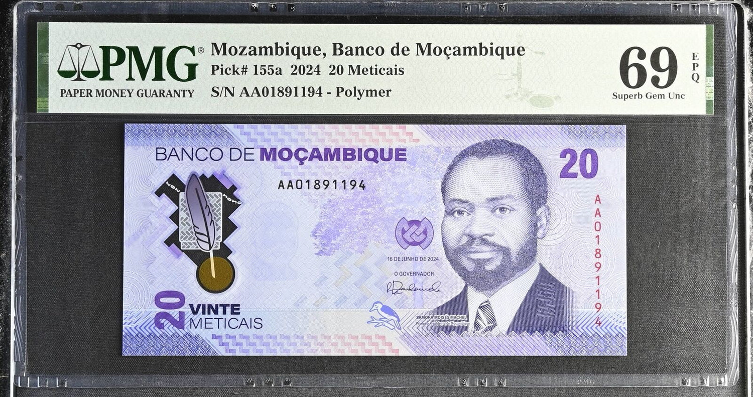 Mozambique 20 Meticais 2024 Polymer P 155 a Superb Gem UNC PMG 69 EPQ TOP POP