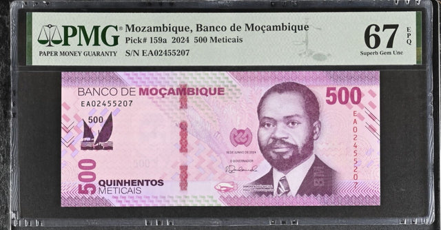 Mozambique 500 Meticais 2024 P 159 a Superb Gem UNC PMG 67 EPQ