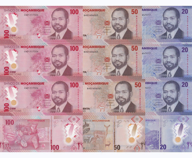 Mozambique set 3 X 5 SETS = 15 UNC 20 50 100 Met. 2024 Polymer P 155 156 157