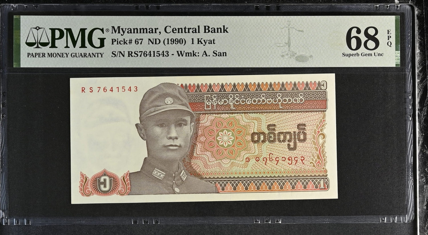 Myanmar 1 Kyat BURMA ND 1990 P 67 Superb Gem UNC PMG 68 EPQ