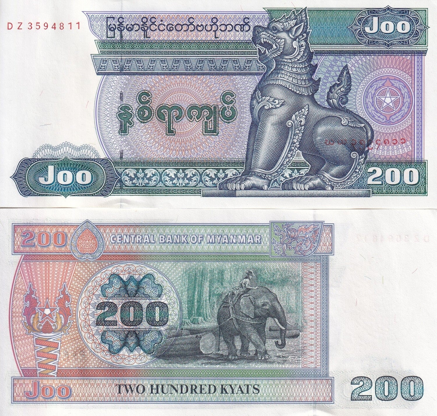 Myanmar 200 Kyats ND 1995 P 75 b Big Size UNC