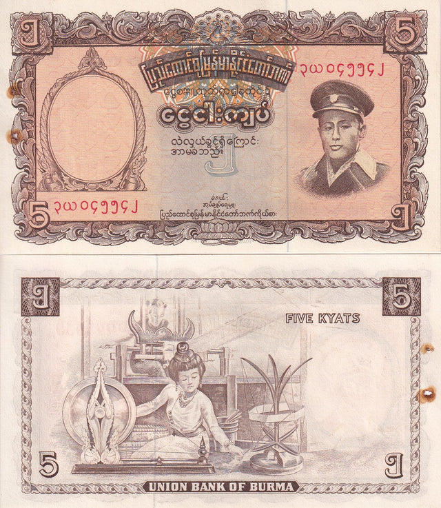 Myanmar 5 Kyat Burma ND 1958 P 47 UNC W/H Rust