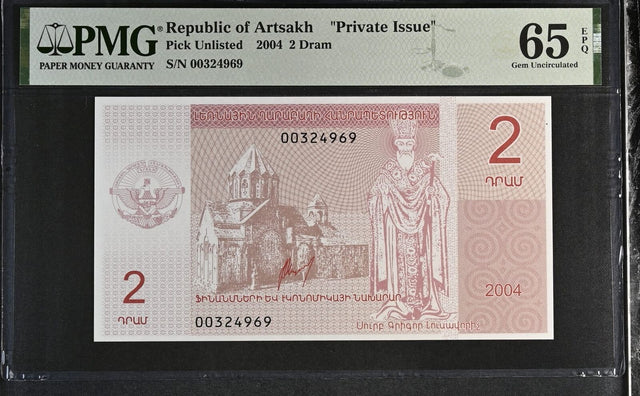 Nagorno - Karabakh 2 Dram 2004 Gem UNC PMG 65 EPQ