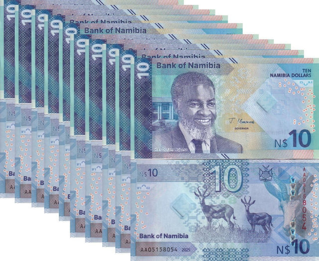 Namibia 10 Dollars 2025 P 20 NEW Design SpringBok LOT 10 Hybrid Window UNC