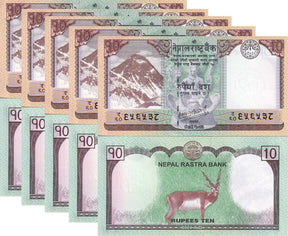 Nepal 10 Rupees 2024 P 77 New date UNC LOT 5 PCS