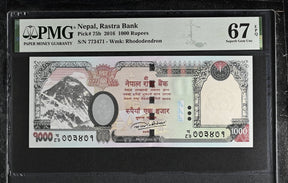 Nepal 1000 Rupees 2016 P 75 b Superb Gem UNC PMG 67 EPQ